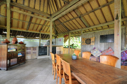 Our restaurant, situated at the top of Bali Lush, is the heart of the property and a true sanctuary for food, fun, family and friends. Housed in a beautifully repurposed open-air Joglo—a traditional Javanese teak residence we carefully sourced from Central Java and rebuilt on site in 2014—our space blends cultural heritage with modern comfort. Surrounded by lush greenery and stunning views, this inviting pavilion creates the perfect atmosphere to enjoy your meal, take in a book, play a board game or make new friends with other guests, our restaurant offers a unique blend of authentic architecture and yummy food in the tranquil Balinese countryside.